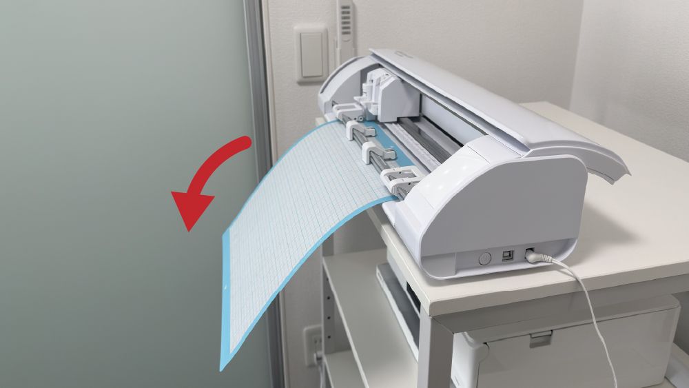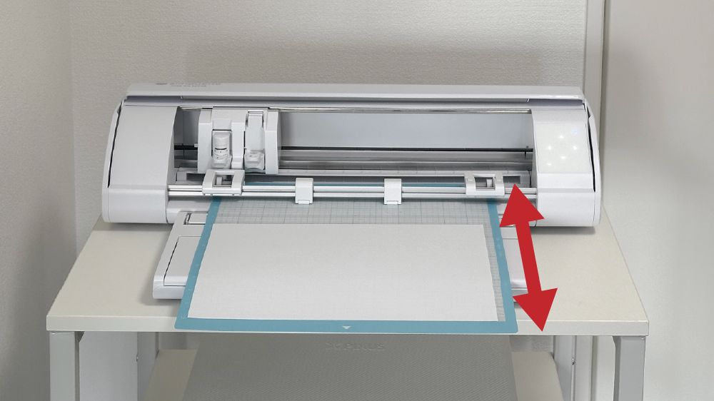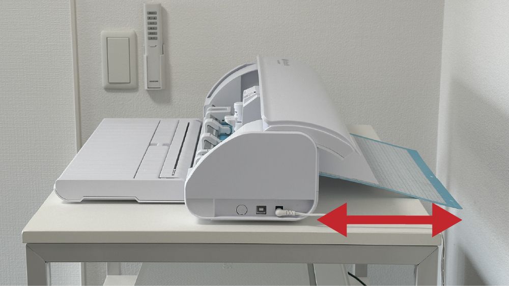 下の方をカットするときは台紙がうしろにびよーんと伸びるので、うしろにもスペースが必要です。
